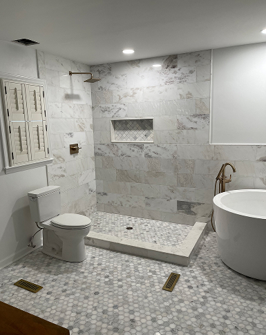 Keeping your home’s bathrooms functional is imperative, and improving their design requires help from the experienced team at JVC Remodeling & Construction. Our bathroom remodeling services in Charlotte, NC, elevate your outdated bathrooms. Whether you need a complete bathroom remodel, a new bathtub, or drywall repair, we’ll be ready to step in.